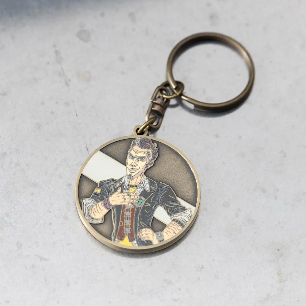 New, from Hyperion - the most handsome company president on Pandora, now in a handy charm perfect for any Vault Hunter's loadout! This metal keychain brings the legendary Hyperion visionary to you in an exclusive Borderlands drop, sure to make any Psycho think twice before sending lead down range. A mandatory accessory for all Hyperion employees and enthusiasts!