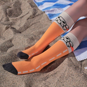 Everyone's favorite First Mate of the Jellyfish Pirates inspires a pair of Guilty Gear socks fit for land, sea, and sky! May and her iconic outfit inspire the design for this wearable collectible. Grab a pair before this elusive treasure is snagged by another privateer!