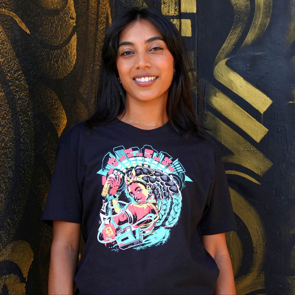 The 39th successor to Bushinryu is on the scene! Make way for the Ninja star, Kimberly, as she bursts into our Street Fighter 6 tee collection. Equip this shirt, and turn up the volume as you drop the Bushin Beats! You're sure to leave your mark on every spot you bomb with your stylin' techniques. Grab yours before it vanishes into the shadow once more!