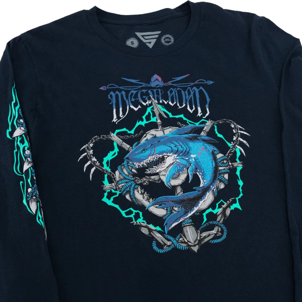 Something old, fast, and hungry is surfacing. Prepare for battle on the open seas with the ancient Megalodon! This Sea of Thieves long sleeve shirt is a treasure fit for pirates who make their name by hunting down fantastic beasts spoken of in legend, and live to tell the tale.