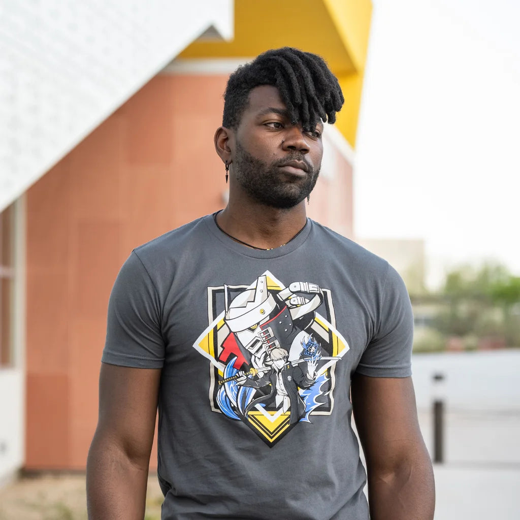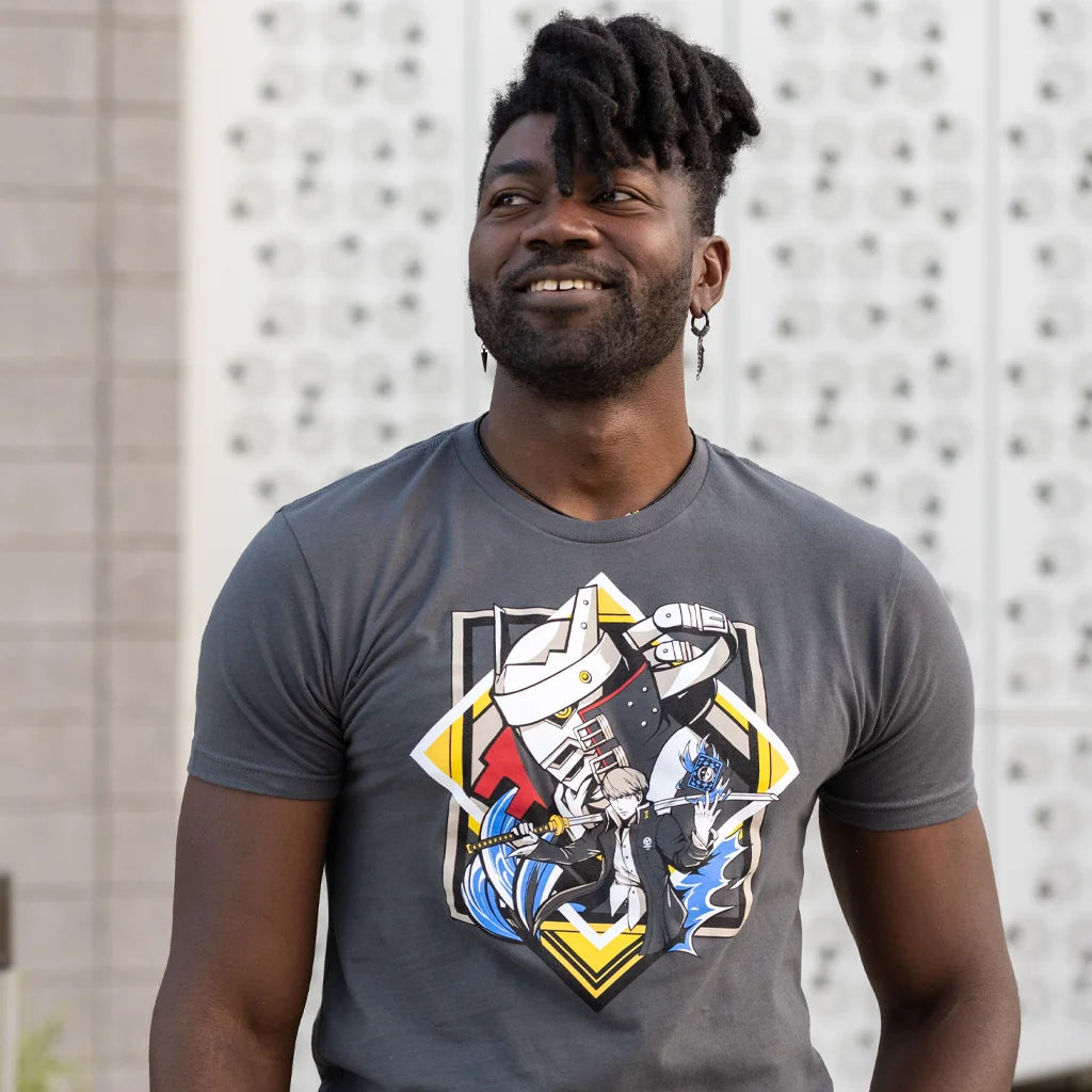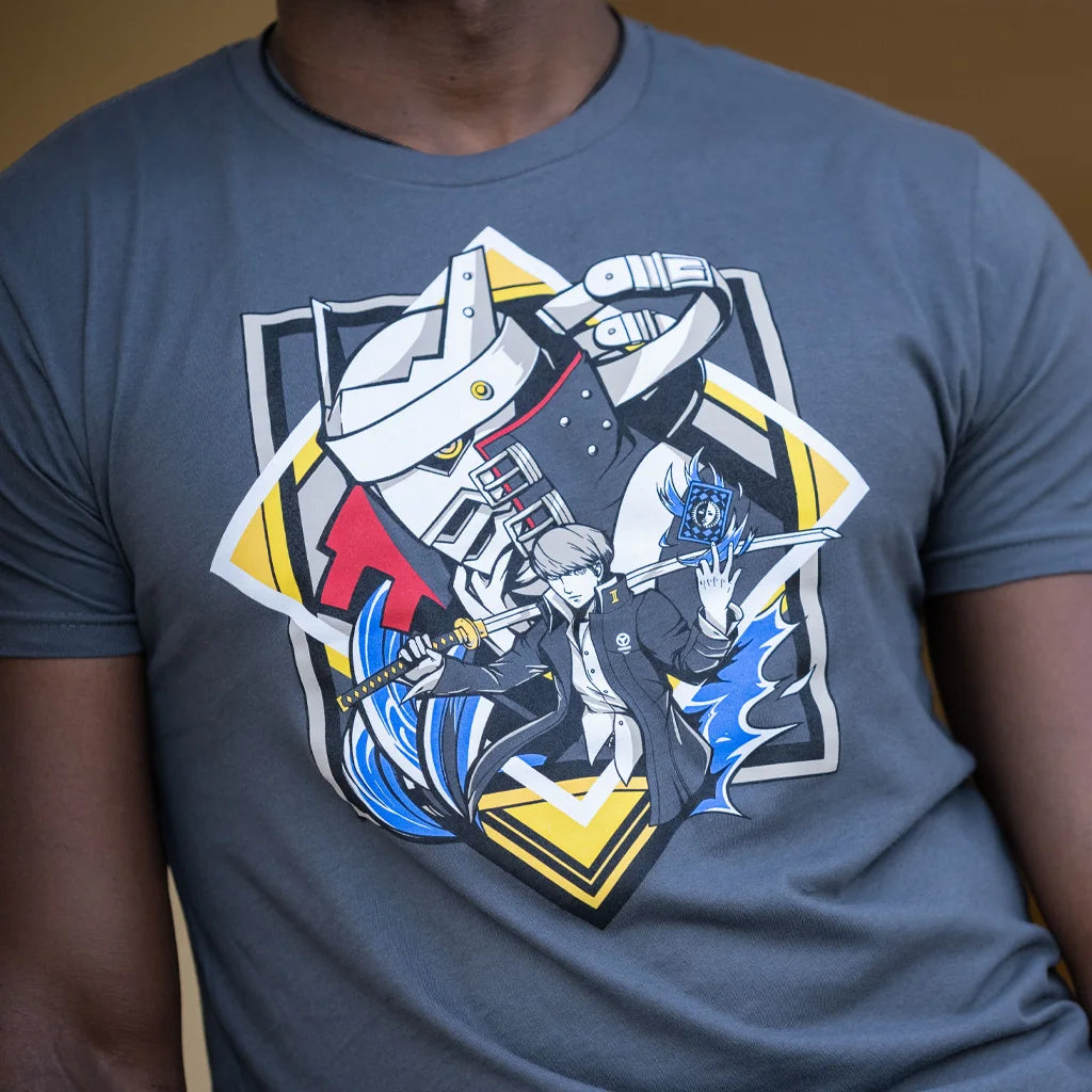 Open thy eyes and call forth the power of the Wild Card! The Investigation Team’s iconic Hero and his Persona, Izanagi, bring a shockingly cool t-shirt to our Persona 4 collection. It’s only available for a limited time - you’d be a Fool not to add this tee to your inventory!
