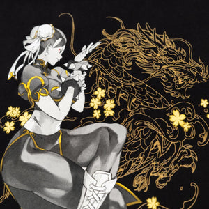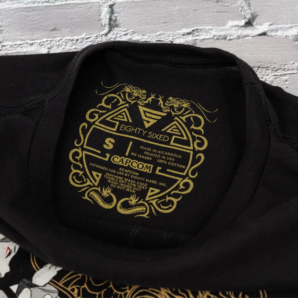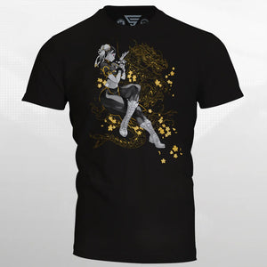 The first lady of the World Warriors, Chun-Li and her classic fit have come to our Street Fighter 6 t-shirt collection, this time in an extremely limited variant of a classic Eighty Sixed design! This kung-fu cop and her Lightning Kicks have brought legends to victory in every era. Make that strength yours when you equip this stunning, gold-tinged tee.